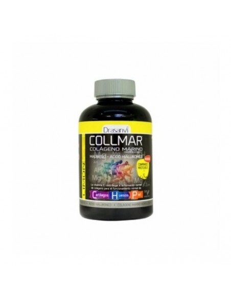 Colágeno Marino de Limón Masticable de Drasanvi Collmar, son 180 comprimidos con un agradable sabor, ricos en colágeno marino, ácido hialurónico, magnesio y Vitamina C, que contribuyen a la formación de colágeno natural y a la regeneración de tejidos óseos, musculares y articulares.